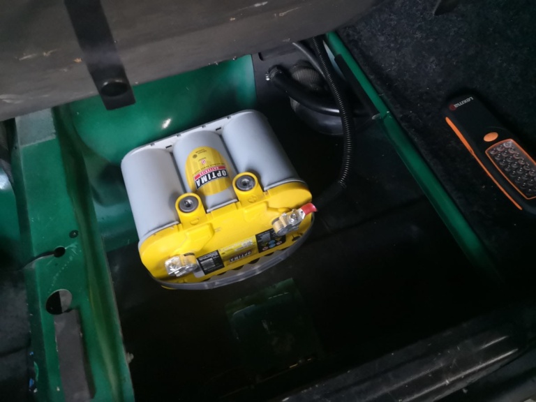 yellow optima under floor in the trunk